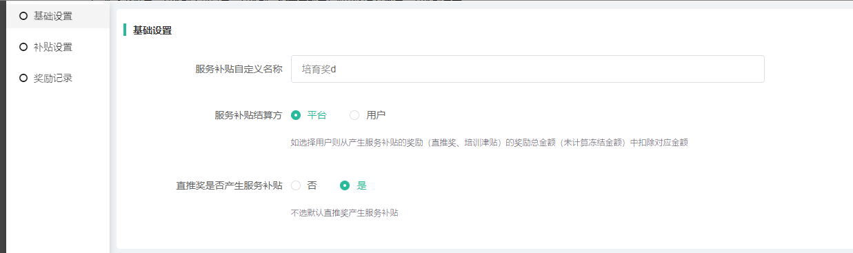 3、直推奖是否产生服务补贴(默认直推奖产生服务补贴)。