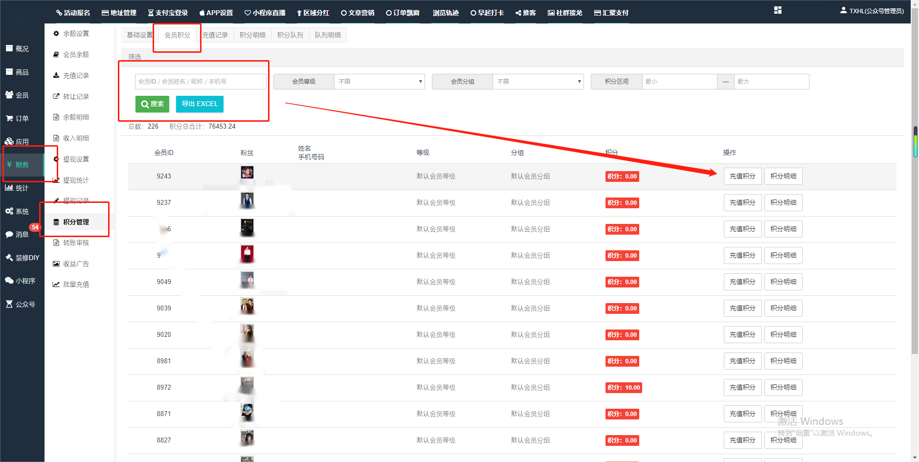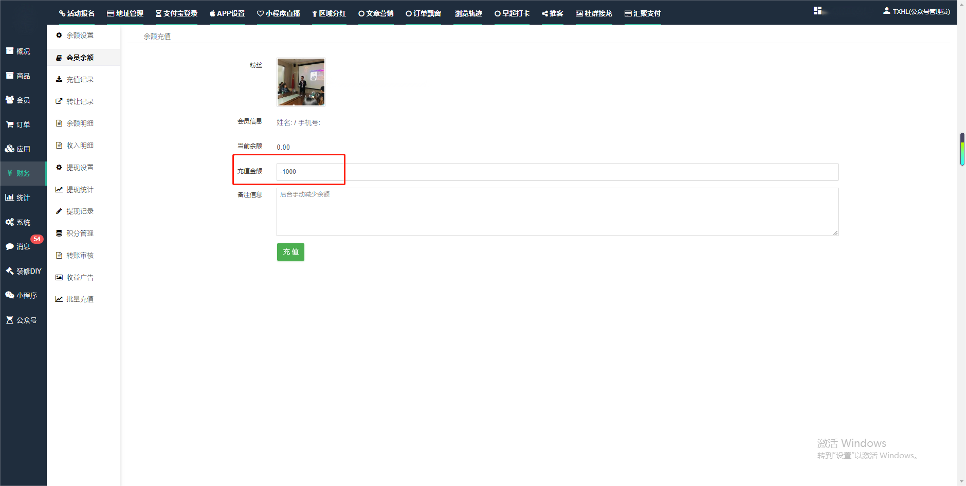 目录 搜索 展开 一、前期准备资料二、数字乡村码-上线操作指南1、服务号的申请流程及认证2、申请小程序流程3、开放平台绑定小程序和公众号三、数字乡村码-系统操作数字乡村码系统管理-概况数字乡村码-商品管理1、发布商品2、商品列表3、商品表单4、商品分类5、品牌管理6、配送模板7、评论管理8、优惠券管理9、商品标签10、退货地址设置11、满额优惠12、批量操作13、配送方式14、基础设置15、商品隐藏四、数字乡村码-会员管理1、全部会员2、会员等级3、会员分组4、资格申请5、会员设置6、推广中心设置7、会员邀请码8、会员关系链修改关系链修改记录9、会员合并记录10、账号注销管理11、会员设置中心五、数字乡村码-订单管理1、订单管理列表2、订单处理流程3、订单状态4、订单修改价格5、订单退款退货6、多包裹发货7、批量发货订单操作步骤8、催发货订单9、物流查询六、数字乡村码-财务管理1、余额设置2、会员余额3、充值记录4、转让记录5、余额明细6、收入明细7、提现设置8、提现统计9、积分管理10、转账审核11、收益广告12、批量充值七、数字乡村码-系统管理1、商城入口2、商城设置①、商城设置②、订单设置③、物流查询④、短信⑤、联系方式⑥、分类⑦、优惠券⑧、分享⑨、幻灯片⑩、广告位⑫、地图设置3、交易设置4、微信模板消息自定义消息模板(新版)自定义消息模板(旧版)小程序消息模板公众号模板消息变更公告5、语言设置6、权限管理7、多媒体管理八、数字乡村码-消息管理九、数字乡村码-应用管理十、数字乡村码系统-数据统计十一、数字乡村码-页面装修DIY1、模板管理2、店铺页面3、顶部导航4、底部导航5、DIY模板市场6、首屏广告7、基础设置8、装修DIY尺寸建议十二、供应商功能插件操作指南1、供应商2、门店-收银台门店申请和使用步骤门店管理①、门店-收银台 营销设置②、门店-收银台 分润设置门店分类门店申请门店审核门店商品门店商品订单收银台订单数据统计核销员基础设置默认设置门店装修3、微社区4、会务活动十三、营销插件操作指南活动报名提货卡新人奖微店问卷调查积分视频分享1、视频分享基础设置2、视频分享发现管理3、视频分享分类管理4、视频分享评论管理5、视频分享分红记录6、视频分享短视频中心每日红包幸运大抽奖签到优惠券二维码任务奖励优惠劵文章音频文章付费文章限时购新海报拓客卡操作流程积分活动素材中心视频红包十四、入驻门店应用类1、门店预约2、附近商品3、门店定位设置4、门店控制5、门店满额包邮6、门店满额减7、导入商品8、门店搜索9、门店股东10、核销券11、多门店核销1、商城后台设置2、前端功能演示十五、常见问题1、后台登录密码修改流程2、会员-余额,积分,后台如何进行充值与扣除3、如何修改上下级关系4、一种万能的获取商城小程序路径的方法 暂无相关搜索结果! 阅读次数:1647 本文档使用 模王系统 发布 2、会员-余额,积分,后台如何进行充值与扣除 会员-余额,积分,后台如何进行充值与扣除一.如何进行余额充值-扣除1.财务-会员余额-搜索会员昵称-右边点击充值余额2.扣除余额,只需要在充值金额前加上 - 号;比如充值-100,等于扣除100余额二,如何手动充值积分-扣除积分(充值与扣除逻辑跟余额是一样的)文档更新时间: 2024-01-05 14:28 作者:链上旅行